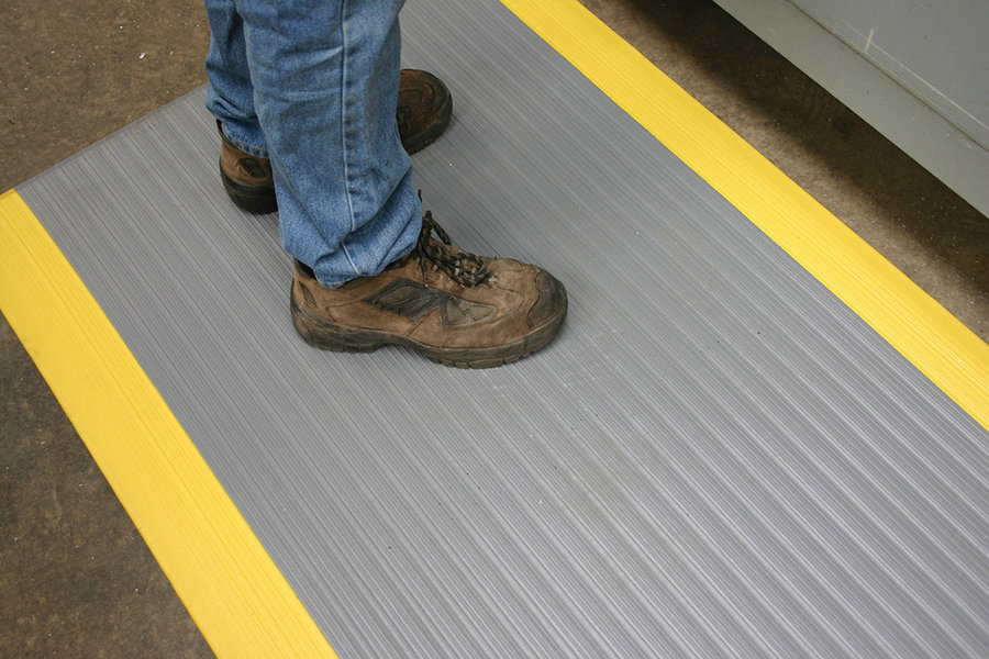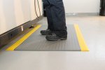 PVC průmyslová protiúnavová rohož s vyvýšeným rýhovaným povrchem eliminujícím riziko uklouznutí.