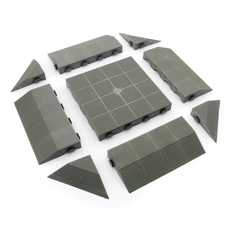 Podlahové dlaždice Combi a jejich dokončovací prvky jsou vhodné do zahrad, kempů, stánků a altánů, bazénů, chodníků i skleníků. Dlaždice je velmi snadné a rychlé poskládat i demontovat, jsou odolné proti povětrnostním vlivům a odolávají olejům a rozpouštědlům. Díky postranním háčkům je možné dlaždice navzájem spojovat i střídavě k získání různých geometrických vzorů. Dlaždice jsou vyrobeny z po...