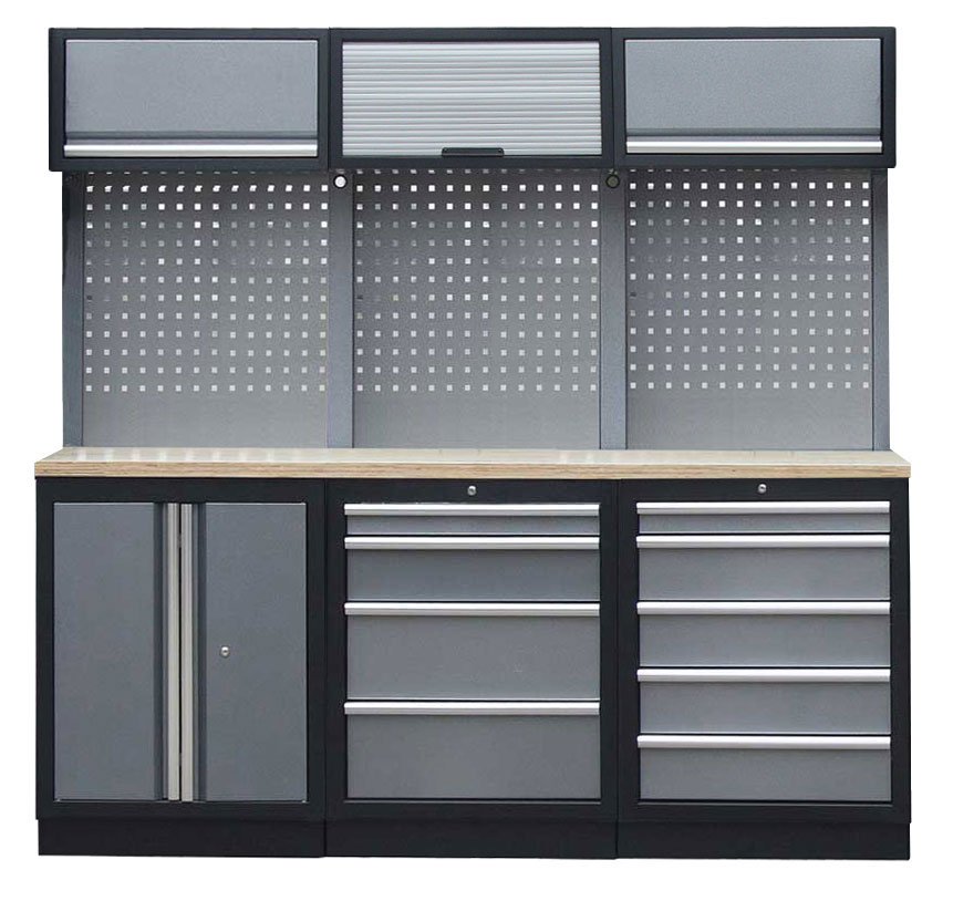 Sestava nábytku v sobě skrývá dostatečné množství úložného prostoru pro vaše nářadí, autotechniku i dílenské vybavení. V kombinaci s bytelnou pracovní deskou získáte multifunkční stěnu, se kterou vám půjde práce od ruky ve všech směrech.