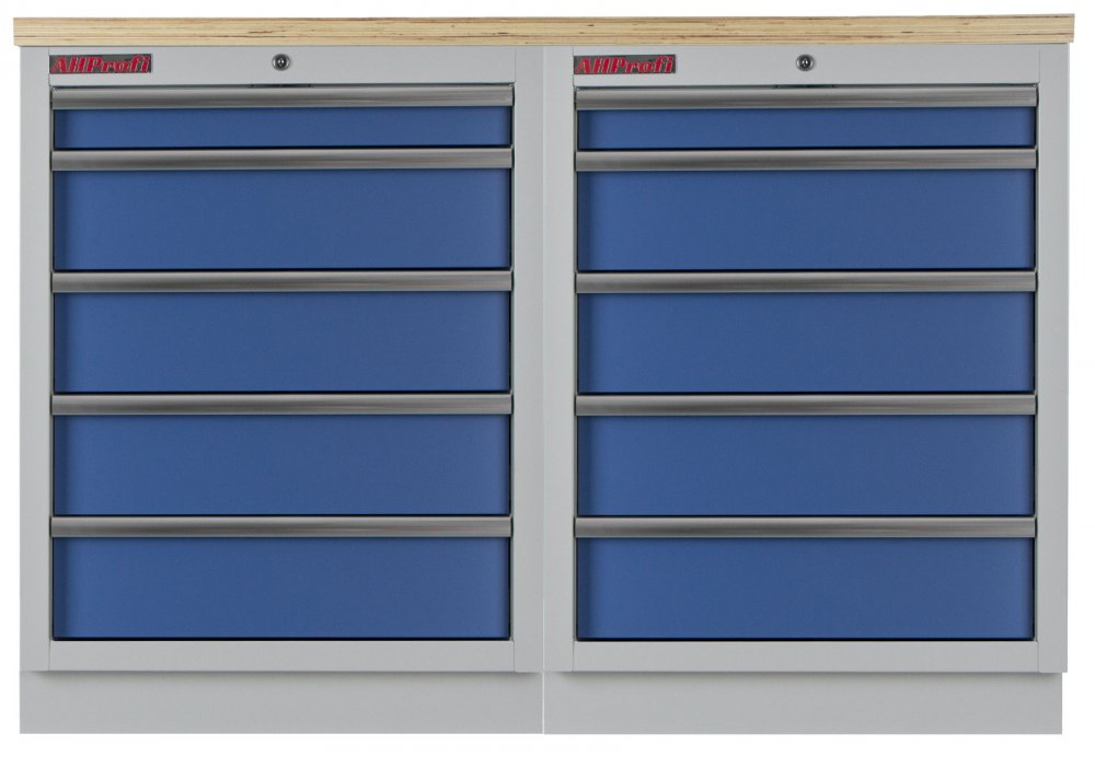 Dílenský nábytek PROFI BLUE s dřevěnou deskou zaujme moderním a profesionálním vzhledem. Kombinace modré RAL 5023 a šedé RAL 7035 barvy se bude vyjímat v každé garáži i dílně.