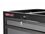 Zásuvky dílenského nábytku PROFI mají vysoce kvalitní pojezdy s kuličkovými ložisky, které poskytují plynulost a přesnost pojezdu zásuvek i při plném zatížení. Max. nosnost zásuvky činí 30 kg.