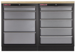 Sestava nábytku v sobě skrývá dostatečné množství úložného prostoru pro vaše nářadí, autotechniku i dílenské vybavení. V kombinaci s bytelnou pracovní deskou získáte multifunkční stěnu, se kterou vám půjde práce od ruky ve všech směrech.