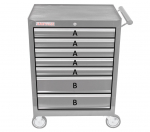 Vozík je opatřen 4 koly, kde 2 z nich jsou otočná na kuličkových ložiscích a vybavená brzdami a není sebemenší problém se skříní zatáčet a dovést nářadí přímo na místo montáže. Odpadá tak čas na neustálé vracení se a zkoumání potřebného nářadí při montáži. Skříň je dodávána složená a je nutné pouze přišroubovat kola a madlo - vše naleznete v jedné ze zásuvek i s potřebnými šrouby a manuálem. Do vozíku je možné přiobjednat i sady s nářadím, které zaručeně zpřehledňují a zrychlují práci. Doplňkové sady nářadí můžete prohlédnout ZDE. Celou skříň je možné uzamknout. V zásilce naleznete také náhradní klíček.