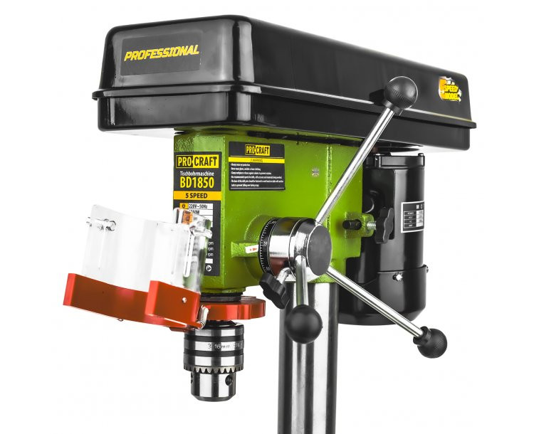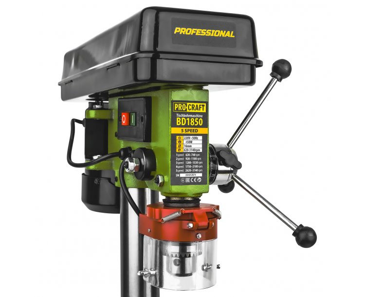 Sloupová vrtačka Procraft BD1850 je určena k vrtání do dřeva, kovu nebo plastů. Regulace otáček v 5 rychlostních stupních vrtání umožňuje nastavení optimálních parametrů při práci s různými materiály. Silný motor s výkonem 450 W a vysokých otáček až 2620 zaručuje dlouhou bezporuchovou práci. Ozubené sklíčidlo umožňuje upnutí vrtáků a stopkových nástrojů do průměru 16 mm. Možnost natáčení pracovního stolu až o 360° a naklápění do úhlu ±45°. Balení karton.