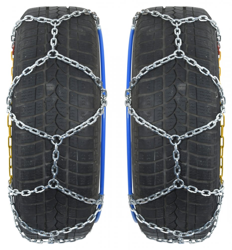 Sněhové řetězy se zesílenými oky, pro osobní vozidla do hmotnosti 2200 kg, splňující evropské normy včetně v Rakousku vyžadované "ÖNORM V 5117".