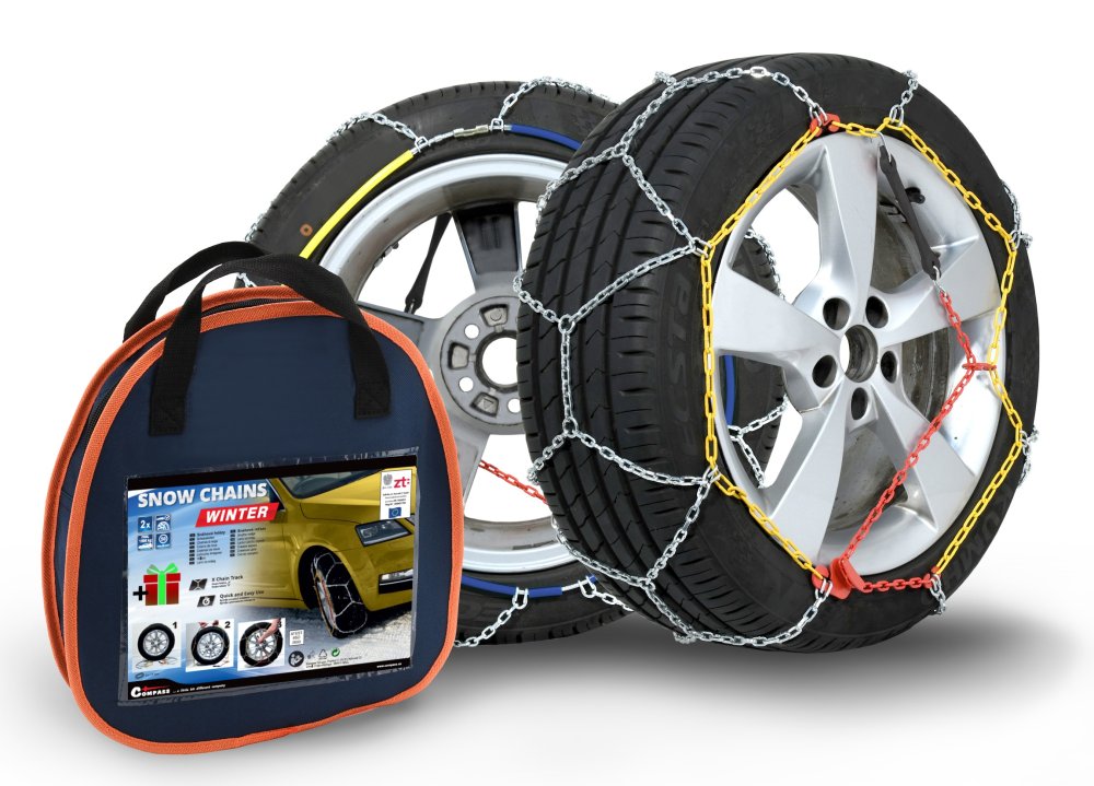 Sněhové řetězy, pro osobní vozidla do hmotnosti 1800 kg, splňující evropské normy včetně v Rakousku vyžadované "ÖNORM V 5117".