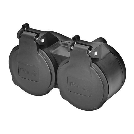 SOLIGHT - dvojzásuvka do vlhka, IP44, černá