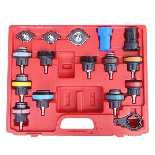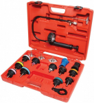 Souprava pro snadnou a rychlou kontrolu netěsností chladícího okruhu pomocí tlaku vzduchu. Cr-Mo materiál hlavic pro vozy Toyota, Honda, Ford, VW, Audi, Volvo, Mercedes-Benz, Bmw, Renault, Fiat, Opel, Peugeot, Jeep, Citroën a další vozy + nákladní vozy.