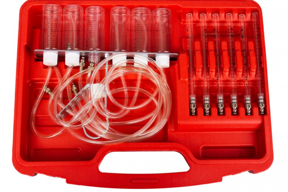 - Souprava určená pro měření průtoku paliva vstřikovaného systému naftových motorů vybavených vstřikováním Common Rail do max. šesti válců.
