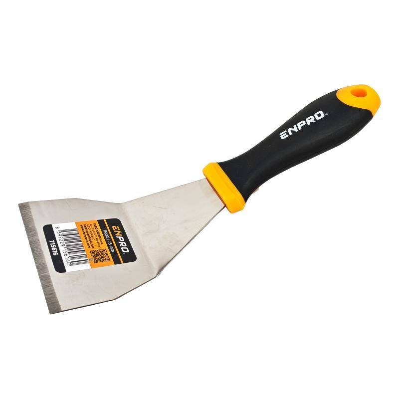 špachtle nerez ENPROgumová ergonomicky tvarovaná rukojeťvhodná pro roztírání sádry nebo jiných tmelících hmot či k odstraňování staré malby a nátěrů