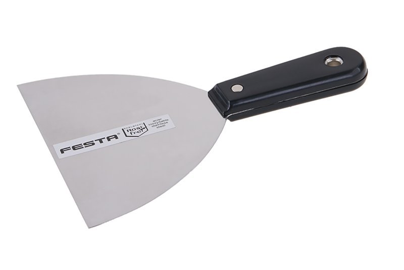 Špachtle nerezová FESTA 150 mm s plastovou ručkou. Je užíván ve štukatérství, malířství, natěračství, opravách karosérií nebo při umělecké tvorbě apod. Je vhodná pro roztírání sádry nebo jiných tmelících hmot či k odstraňování staré malby a nátěrů.