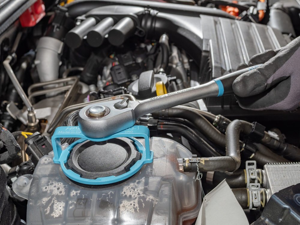 Speciální klíč pro snadné uvolnění těsných víček expanzních nádob chladící kapaliny vozidel VAG.
