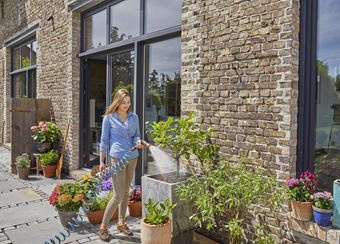 V sadě nalezneme také rozprašovač s plynulým nastavením množství vody, který perfektně drží v ruce.