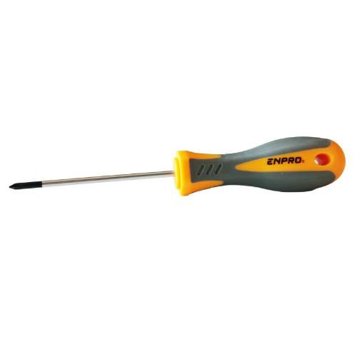 šroubovák křížový PH ENPROkovový dřík vyroben z velmi kvalitní chromvanadiové ocelikalený hrot je magnetický a povrchově chráněn tvrdochromemergonomicky tvarovaná rukojeť (kombinace polypropylenu a pryže) zaručuje výborné antiskluzové vlastnosti a dobrou odolnost vůči mazadlům a chemikáliím