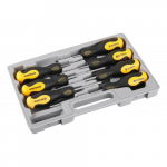 Sada obsahuje šroubováky: - ploché 3 x 75, 5 x 75, 6 x 100, 6 x 125, 8 x 150 - křížové PH0 x 75, PH1 x 75, PH2 x 100, PH3 x 150 - ergonomická rukojeť - chrom vanadium