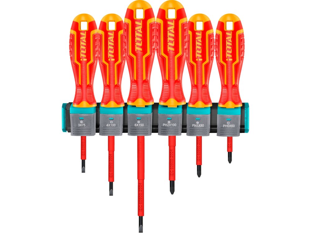 Sada elektrikářských šroubováků 1000V kvalitní chrom vanadová ocel Sada obsahuje: SL3×75, SL4×100, SL6.5×150, PH0×60, PH1×80, PH2×100 certifikace VDE Celý popis