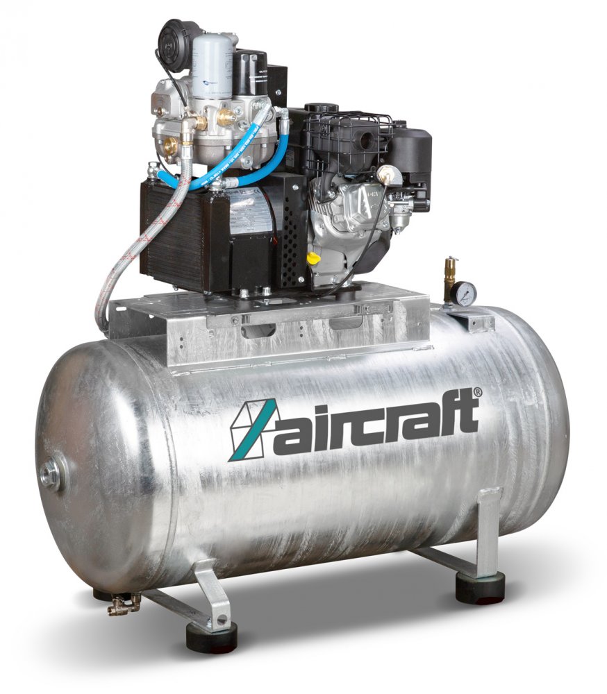 Šroubový kompresor na benzínový pohon určený pro trvalý provoz i při nižší spotřebě vzduchu.