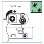 Varianta T - s časovým doběhem v rozsahu 2 - 23 min. Nastavení se provádí pomocí trimru na ovládací desce pod krycí mřížkou.