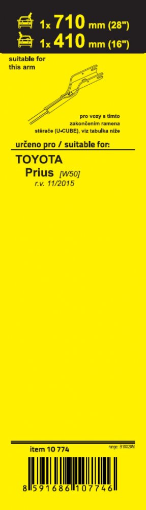 Sada dvou plochých stěračů FLAT (řidič + spolujezdec) se speciálním uchycením. Délky stěračů a systém uchycení na ramínko jsou přizpůsobeny vybraným vozům (viz tabulka použití).