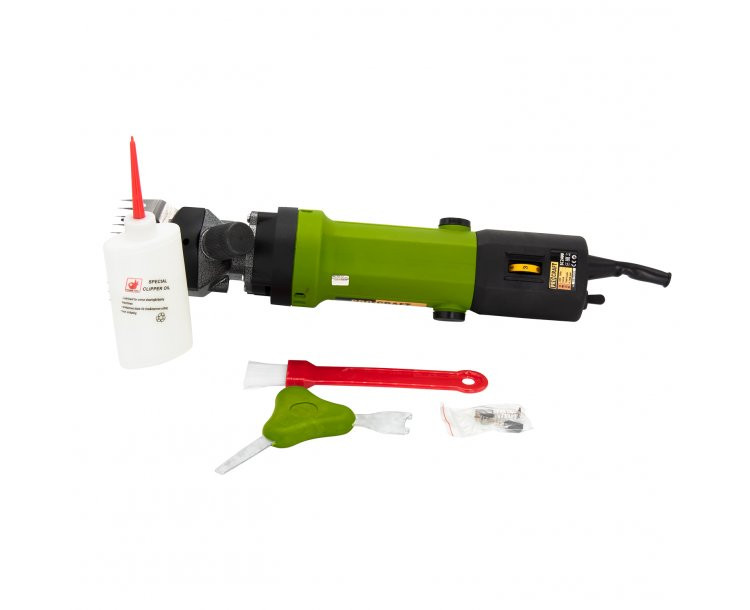 Strojek SC2400 pro stříhání ovcí a koz a jiných hospodářských zvířat. Strojek je vybaven 350W elektromotorem nové generace, který umožňuje vyvinout vysokou rychlost s možností nastavení požadované rychlosti v rozsahu od 0 do 2400 ot./min pro různé druhy vlny a vylepšeným systémem chlazení vzduchem, který zabraňuje přehřátí. Kvalitní ložiska zajišťují nízkou hlučnost a nízké vibrace při stříhání ovcí. Nůžky na stříhání ovcí jsou vybaveny odolnými čepelemi z uhlíkové oceli a mají šířku řezu 76 mm. Nechybí ani upínací šroub, který umožňuje upravit utažení nožů. Dlouhý kvalitní 5m přívodní kabel, ergonomická pogumovaná rukojeť zajišťuje pohodlnou práci. Stroj na stříhání ovcí je založen na komponentech vysoké úrovně a je určen pro použití při stříhání stáda ovcí do 1000 hlav. Součástí dodávky je montážní klíč, přepravní kufr, čistící štětec, nádoba na mazací olej a uhlíkové kartáče. Balení karton.
