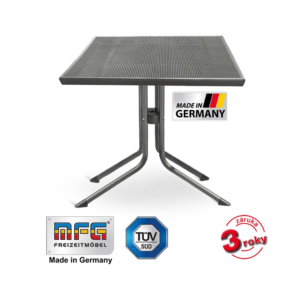 Ideální pro venkovní gastro použití v restauracích nebo terasách. Nábytek z tahokovu německé společnosti MFG (Mecklenburger Freizeitmöbel GmbH) se vyznačuje perspektivním designovým zpracováním při použití těch nejmodernějších materiálů. Vyjímečnou kvalitu potvrzují náročné zkoušky kvality GS .