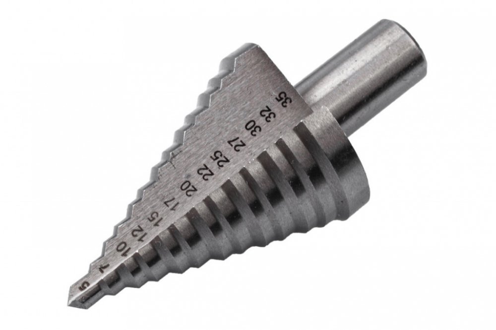 Stupňovitý vrták využijete pro vrtání běžných typů průmyslových plastů a kovu stejně tak ocelových desek do 3 mm tloušťky. Otvor má přesný kruhový tvar a přední hranu je možné srážet při jediné operaci náběhem většího průměru.