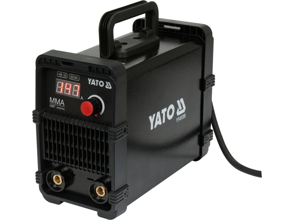 Funkce: - Hot start - Když je elektroda umístěna na svařovaný materiál, svářeč na zlomek sekundy zvýší svařovací proud, což značně usnadňuje zapálení oblouku. Model YT-81355 nemá vestavěné úpravy parametrů pro tuto funkci. Jsou přednastaveny na nejoblíbenější typ elektrod na trhu, tedy rutilové elektrody.