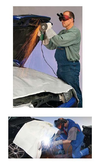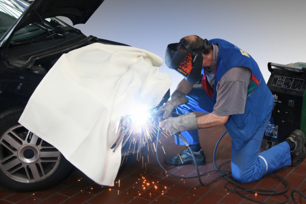 Kvalitní svářečská deka proti poškození okolí při svařování.