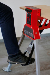 přenosný stojanový svěrák - masivní konstrukce s nostností až 250 kg jednoduché, rychlé a pevné upnutí trámů, trubek, desek, apod. rozteč upínacích čelistí až 95 cm se silou až 10 KN nožní pedál pro svírání materiálu - volné ruce pro další práci intuitivní způsob skládání a masivní rukojeť pro snadné přemístění, přepravu nebo uložení pracovní výška 82 cm - lze kombinovat s položkou Koza - podpěra 590 kg 23657 Instruktážní video