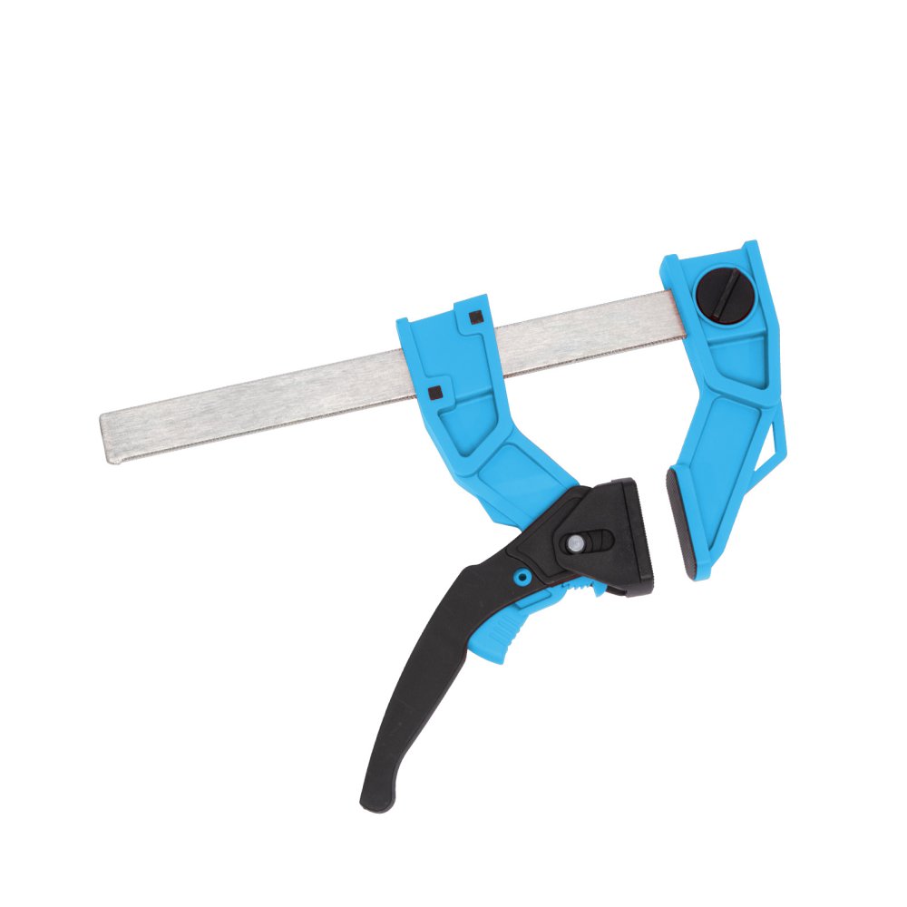 Rychloupínací páková svěrka umožňuje snadné a rychlé upnutí materiálu jednou rukou. Díky ergonomické páce je manipulace pohodlná a bez námahy. Silná upínací síla (max.1200 N) a plastové čelisti s ochrannými krytkami chrání povrch materiálu před poškozením. Svěrku lze přestavět ze stahovací na rozpínací. Sedlo svěrky je nastavitelné v rozmezí 120°.