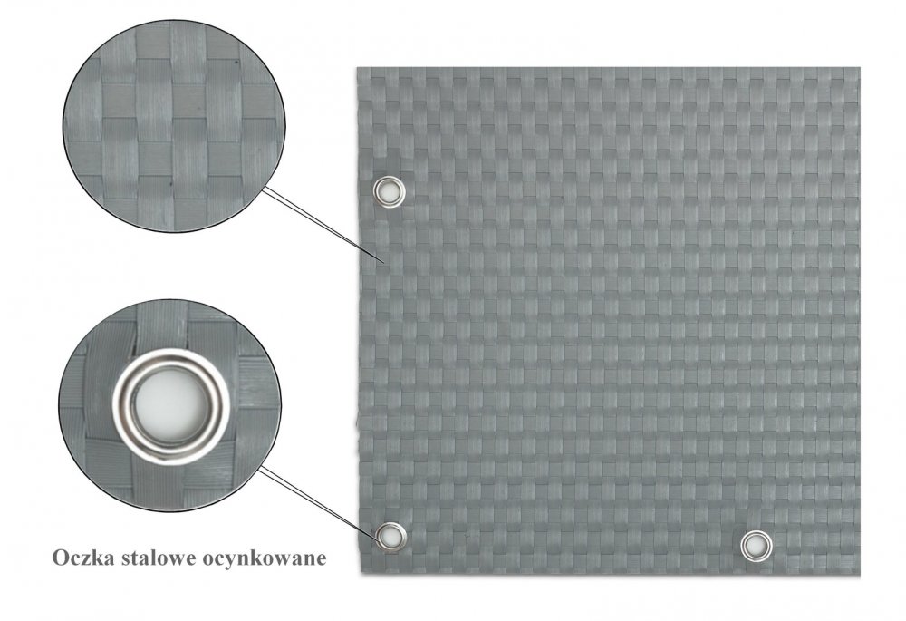 • Světle šedá plastová ratanová stínící rohož "umělý ratan" s oky - délka 300 cm a výška 75 cm