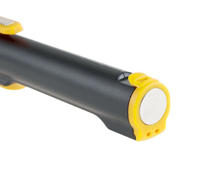 LED svítilna, 200mm, s čelním svícením 40 lumen a bočním 120 lumen, magnety k připevnění, otočný klip. 3xAAA.
