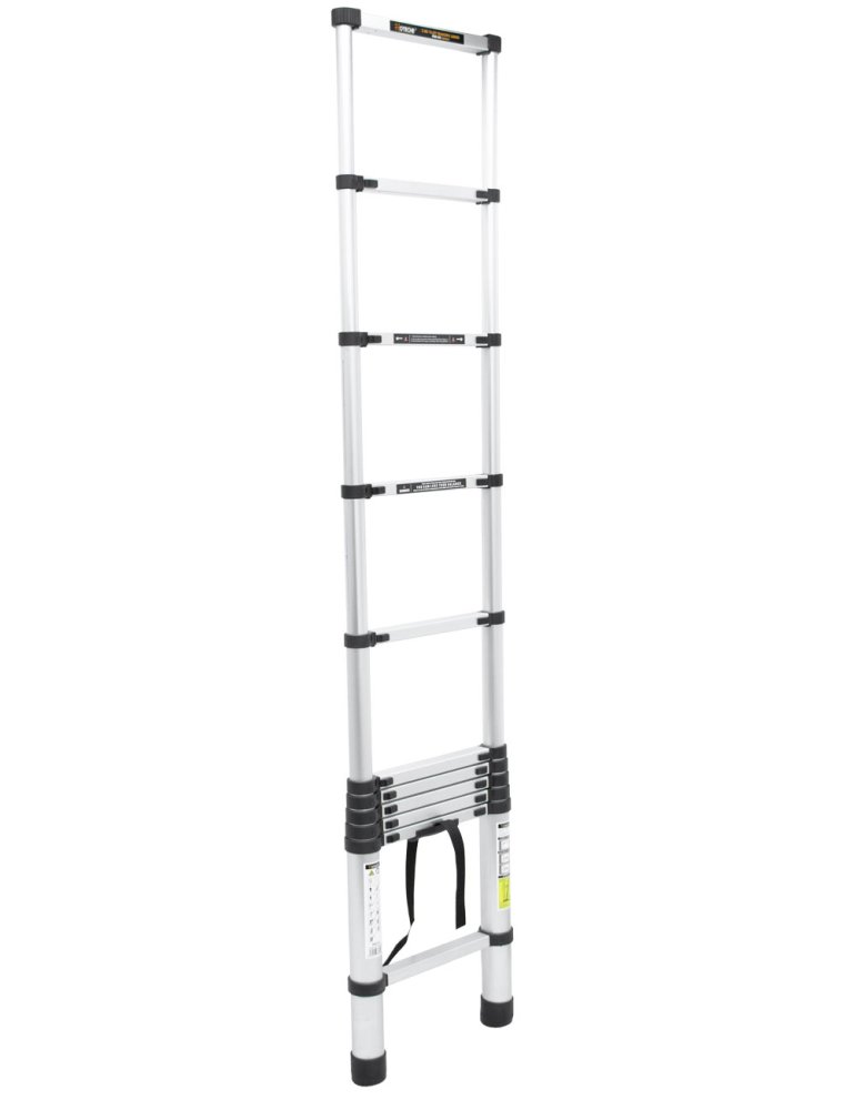 Hliníkový teleskopický žebřík o délce 3,2 m pro práce v interiéru i exteriéru a širokou škálu úkolů, jako je malování, čištění oken nebo montážní práce.