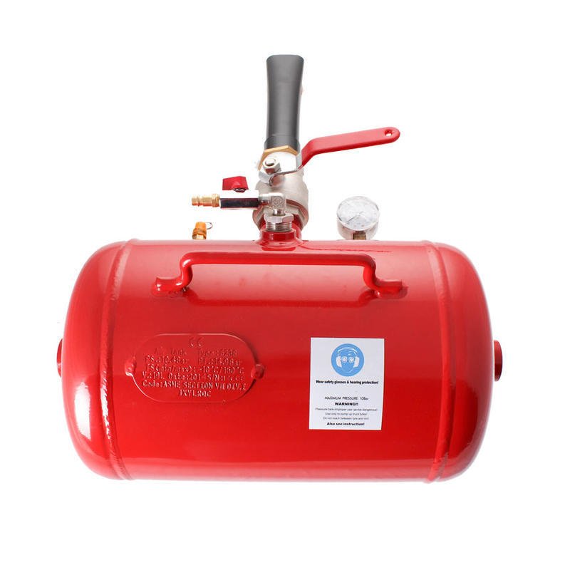 Vzduchové dělo o objemu 19 l pro odrážení patek pneumatik terénních nebo větších osobních automobilů pro případy kdy se patky pneumatiky nedostávají do těsného kontaktu s ráfkem