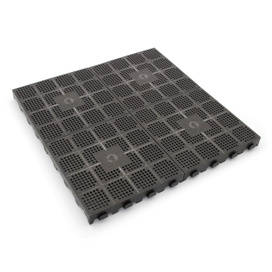 Podlahové dlaždice Combi a jejich dokončovací prvky jsou vhodné do zahrad, kempů, stánků a altánů, bazénů, chodníků i skleníků. Dlaždice je velmi snadné a rychlé poskládat i demontovat, jsou odolné proti povětrnostním vlivům a odolávají olejům a rozpouštědlům. Díky postranním háčkům je možné dlaždice navzájem spojovat i střídavě k získání různých geometrických vzorů. Dlaždice jsou vyrobeny z po...