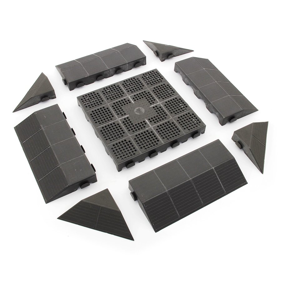 Podlahové dlaždice Combi a jejich dokončovací prvky jsou vhodné do zahrad, kempů, stánků a altánů, bazénů, chodníků i skleníků. Dlaždice je velmi snadné a rychlé poskládat i demontovat, jsou odolné proti povětrnostním vlivům a odolávají olejům a rozpouštědlům. Díky postranním háčkům je možné dlaždice navzájem spojovat i střídavě k získání různých geometrických vzorů. Dlaždice jsou vyrobeny z po...