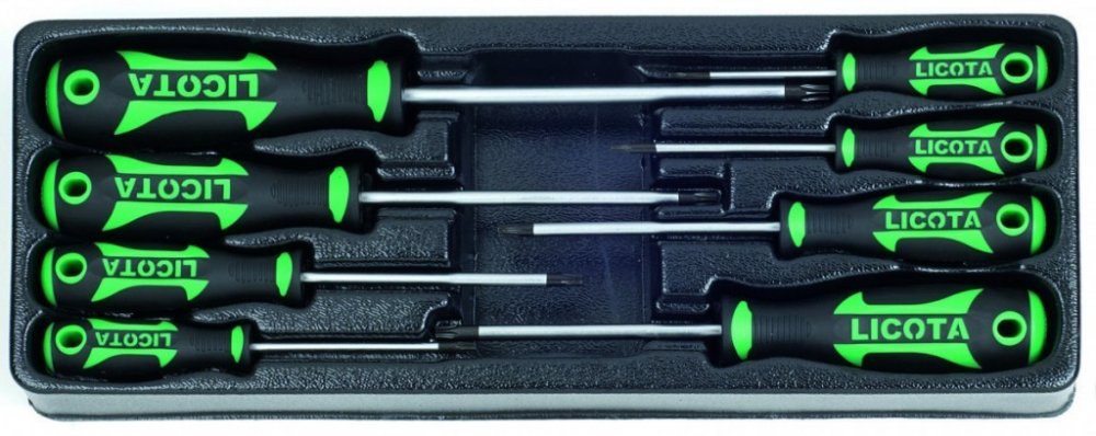 Výplň pojízdných skříněk se sadou TORX šroubováků LICOTA, celkem 8 kusů, odolné vůči korozi a oleji, velikost T8 - T40.