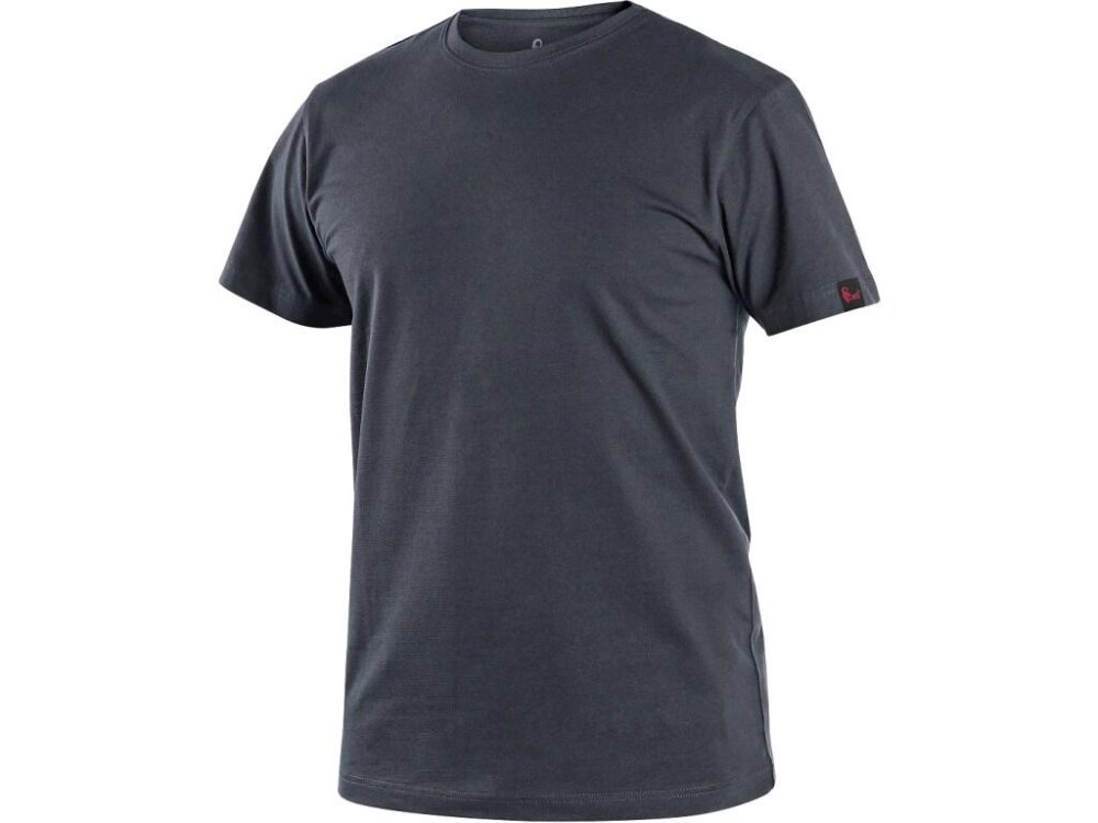 Pánské tričko s krátkým rukávem, kulatý průkrčník, zpevňující krční a ramenní páska, boční švy. Finální silikonová úprava materiálu, která zajišťuje vyšší měkkost a pružnost, rozměrovou stálost a omezuje žmolkovatění. Použití v práci i pro volný čas.