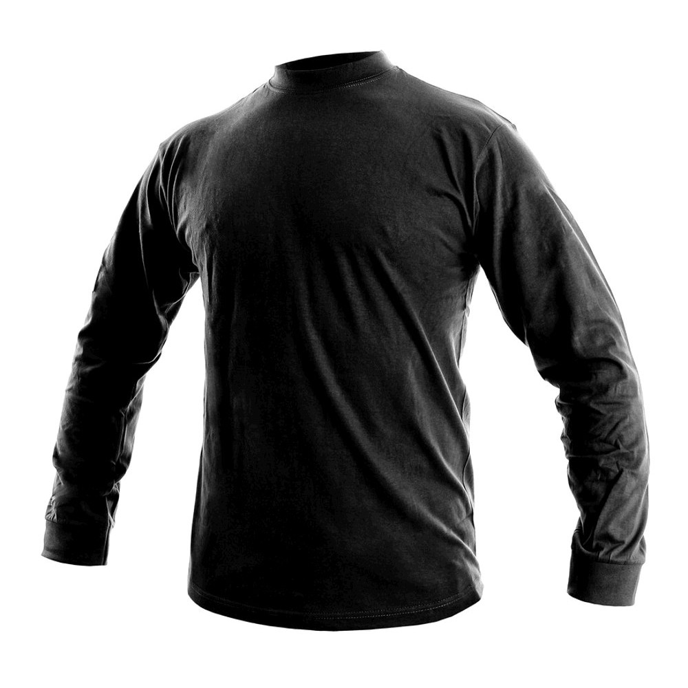Pánské tričko s dlouhým rukávem, kulatým průkrčníkem a hlavicovým rukávem. Zpevňující krční a ramenní páska, trup je po stranách beze švů a rukávy zakončeny manžetou.