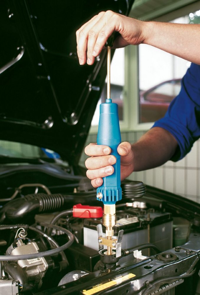 Univerzální adaptér pro kontrolu netěsností v chladicích systémech a topných okruzích.