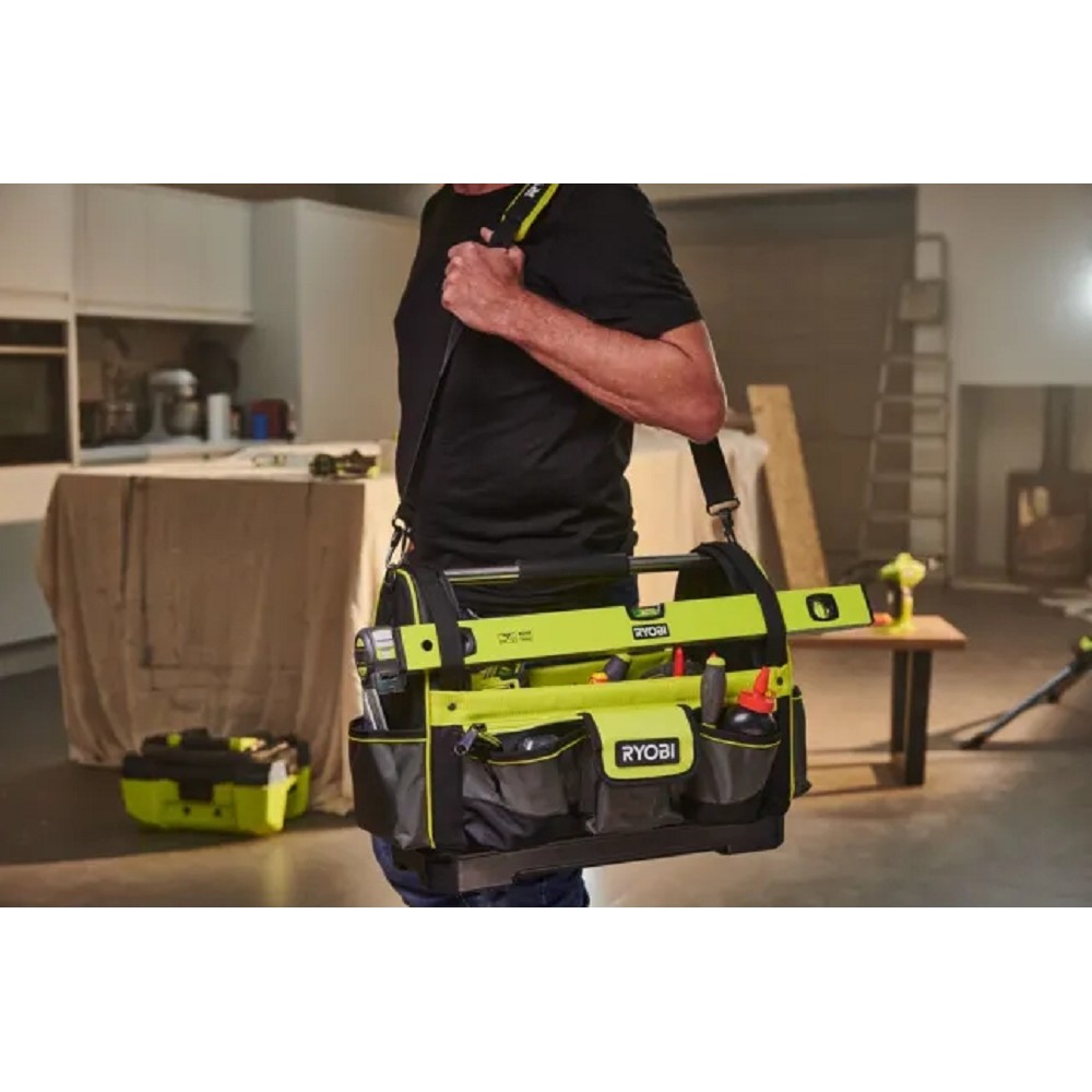 Vnější strana: 1 kapsa na zip, 1 boční kapsa na každé straně, 3 zadní kapsy, držák na metr.