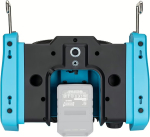 Součástí je praktické závitové uchycení 1/4″ a 5/8″ pro montáž na stavební nebo foto stativ, LED signalizace kapacity akumulátoru a háky pro zavěšení.
