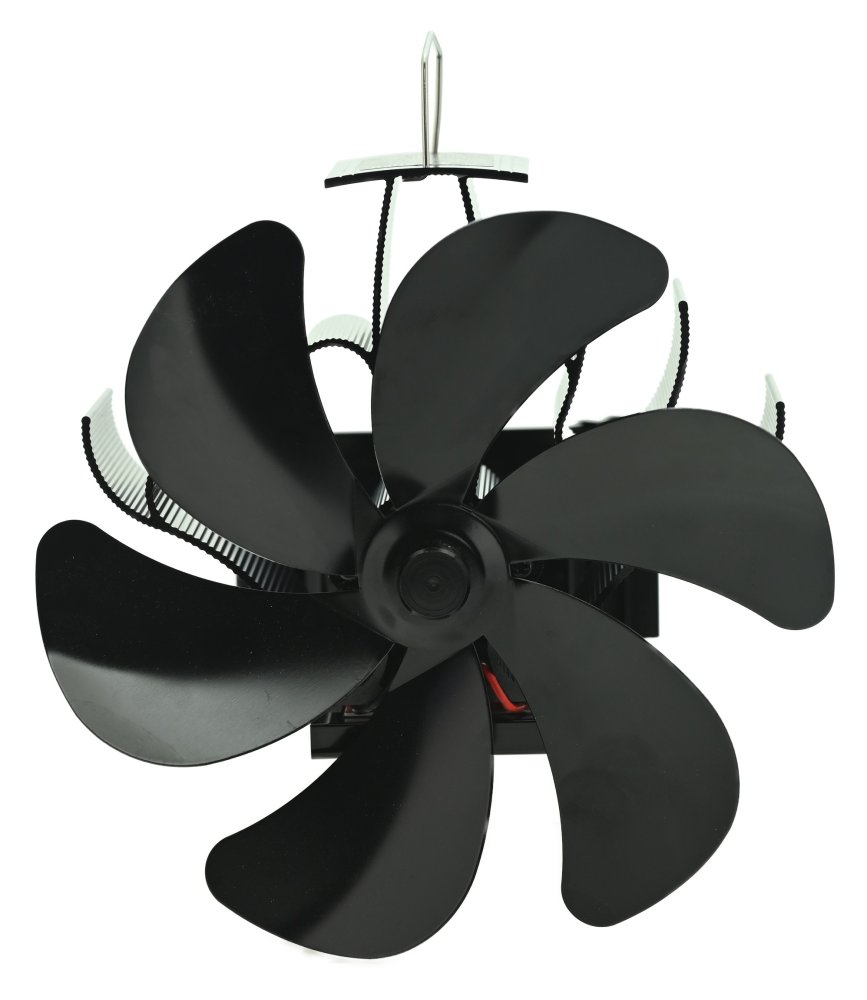 Šestilopatková vrtule se začne plynule rozbíhat přibližně při 80°C a s rostoucí teplotou (optimální rozsah 80–250 °C) se zvýší otáčky i objem proudícího vzduchu. Vrtule o průměru 160 mm dokáže rozhýbat proudění až na úroveň okolo 210 m3/h a svým tichým chodem neruší atmosféru u krbu.