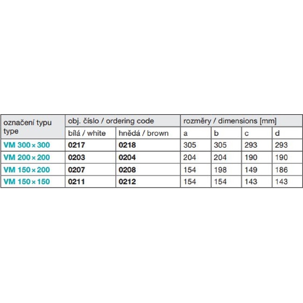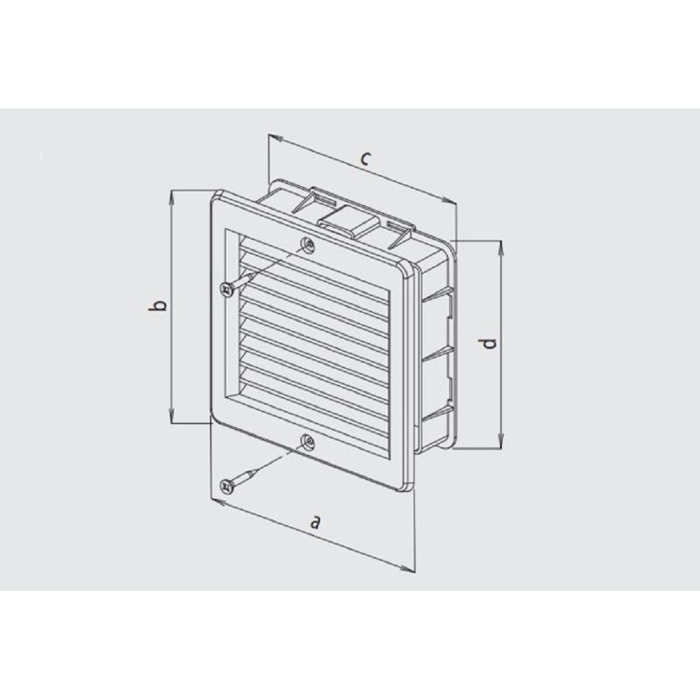 Obsah balení: Větrací mřížka, rámeček, vruty a hmoždinky