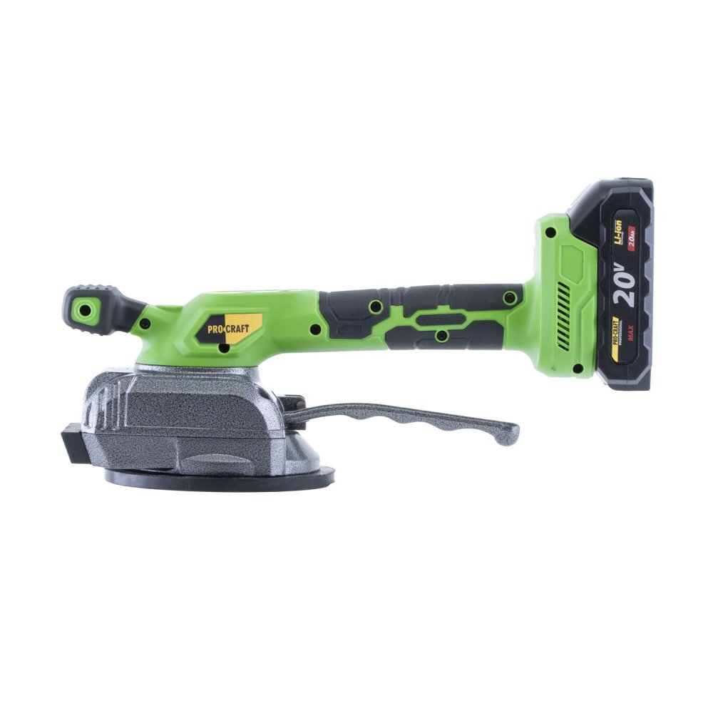 Vibrační přísavka na dlažbu Procraft PTM20-1b-c je profesionální nářadí určené pro přesné a bezpečné pokládání dlaždic a jiných hladkých materiálů. Díky vysoké sací kapacitě a vibračnímu mechanismu usnadňuje manipulaci s dlažbou a zajišťuje dokonalé přilnutí k podkladu. S napájením 20V Li-ion baterií poskytuje mobilitu a nezávislost na elektrické síti, což ocení profesionálové i domácí uživatelé.