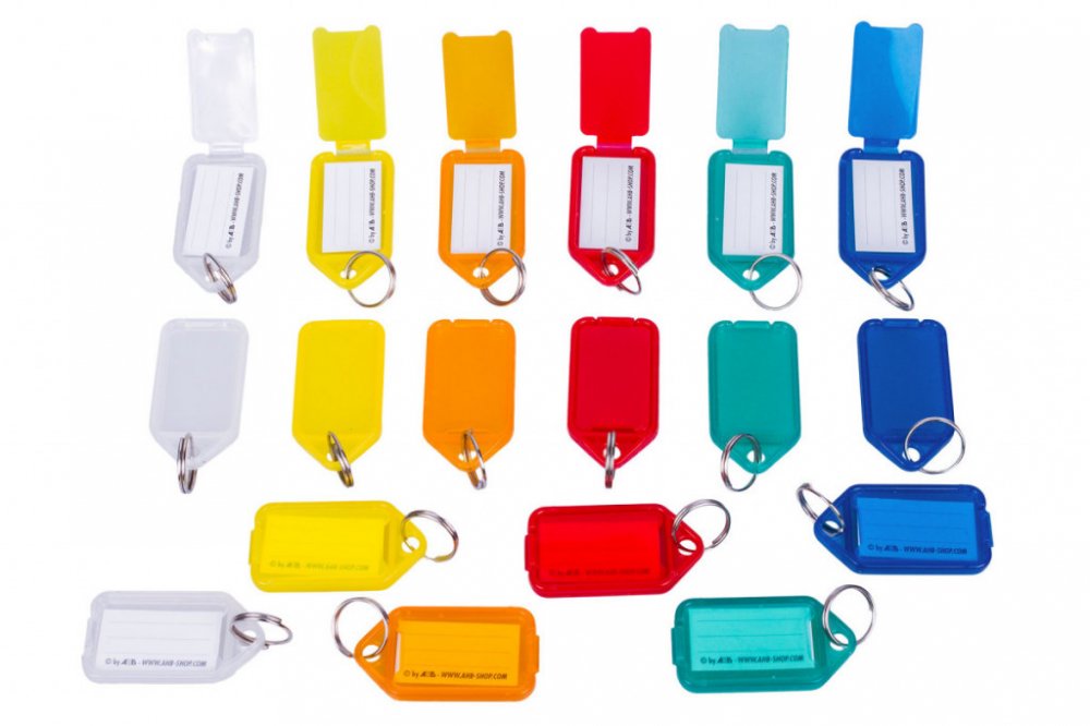 Opakovaně použitelné visačky na klíče CLICK jsou vhodné pro identifikaci klíčů v budovách pro rozlišení pro umístnění ve skříních na klíče, případně pro správce budov, který nosí klíče pohromadě. Na etiketu napíšete identifikaci černým fixem, vložíte ji do visačky a pouzdro zakliknete. Díky průsvitné ploše CLICKu budete moci klíče snadno identifikovat. V balení naleznete 6 různých barev rozlišovačů na klíče např. pro rozdělení pater, skupin apod. V balení naleznete 100 cedulek na klíče osazené závěsnými kroužky a 200 etiket.