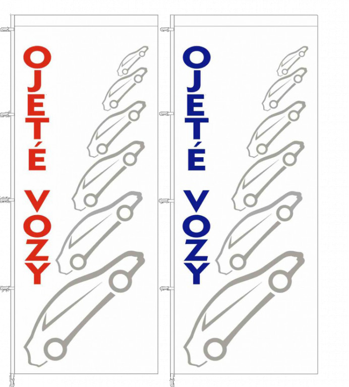 Vlajka ojeté vozy 100x250cm s karabinami a tunýlkem na rameno žerdi.