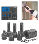 Délka 43mm a 75mm. Velikost M14, M16, M18. Rozměr čtyřhranu 1/2". Sada obsahuje adaptér 3/4".