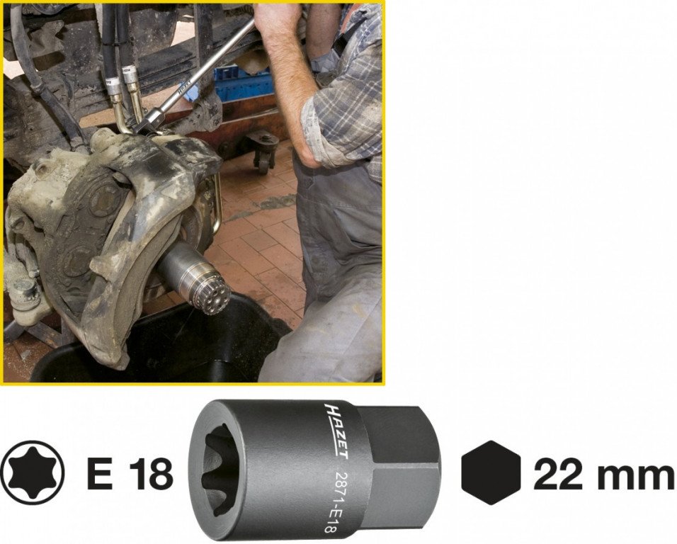 Ovládáte např. nástrčným očkovým klíčem HAZET 6630d-22 ve spojení s držákem nářadí 6397 (pro uvolnění), respektive momentovým klíčem 6293-1CT nebo 6295-1CT (pro utažení).