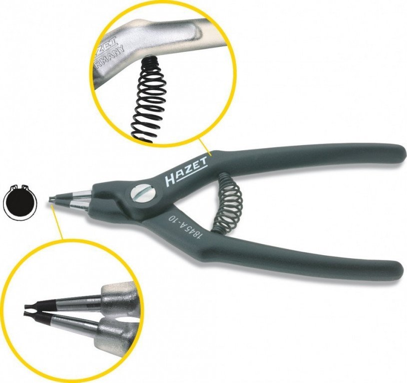 Vnější přímé kleště na pojistné kroužky o délce 180 mm. (Tvar A). Kleště s vratnou pružinou.